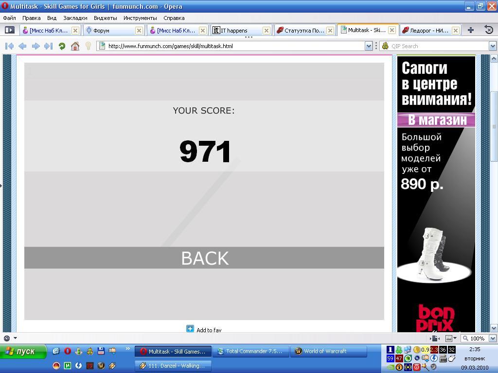 | Одна из наиболее частых ошибок рейдящих людей - это так называемое "туннельное" зрение. (tunnel vision) Смысл заключается в том что из всего потока информации который должен быть усвоен, человек воспринимает лишь то, что относится только к одному обьекту. Например, танки которые танчат моба и не замечают как по рейду гуляет второй моб, хилы которые отлично хилят но не успевают выходить из луж\воид зон или дамагеры которые тратят все свое внимание на поддержание своей ротации и совершенно теряются в других своих обязаностях (кайт, сбивание кастов и тд). вот предлагаю одну увлекательную игру, которая призвана развить у вас так называемую "многозадачность" и избавит от синдрома туннельного зрения, а тем у кого таких проблем нет, будет очень приятно просто похвастаться результатом Управление. Первая платформа управляется клавишами "влево" "вправо" на клавиатуре. Синий прямоугольник управляется стрелочками "вверх" "вниз". Зеленый квадратик управляется клавишами "W" "S" "A" "D". и последняя стрелочка управляется пробелом. Играть! Эту мини игру нашел на сайте гильдии the kingdom of ernor (если кто то вдруг занет такую.) многие топовые игроки (в основном ПвПшники) набирают 400-500 очков. оцените, когда попробуете выкладываем скрины с результатами:)