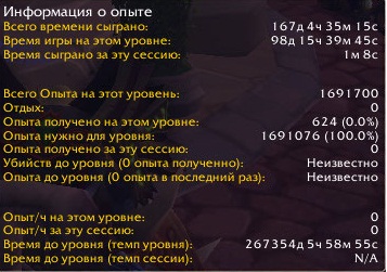 | А если собрать "информацию ОБ опыте" (переводчики, блин ) со всех чаров? Имхо, только так можно определить степень "задротства" - стремление узнать все классы